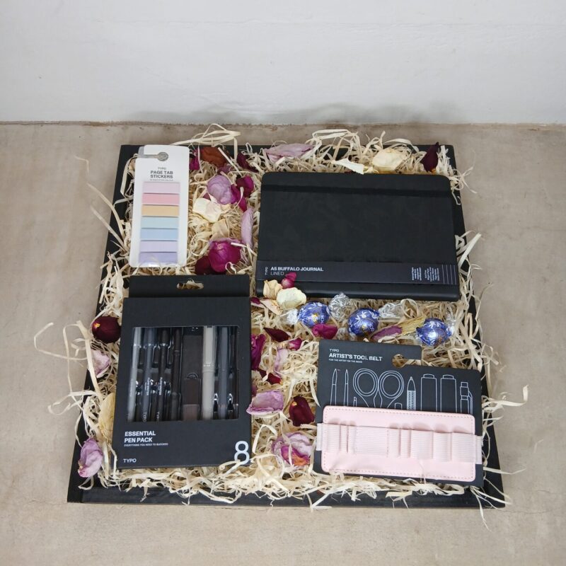 An awesome stationary hamper for a person that loves writing, sketching or journaling.